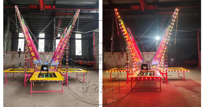 安德利新款4人發(fā)光蹦極是最近研發(fā)的蹦極當中比較流行的一款,無論是外觀,還是裝飾都比以前的更加漂亮!發(fā)光蹦極也有新的功能,可以折疊,可以移動,方便經(jīng)常移動運輸,適用到景區(qū),公園,廣場,游樂場,廟會等場所!發(fā)光四人蹦極是四人蹦極的升級版,我們在原有的蹦極基礎上增加了LED彩燈以及軟包設計,讓設備玩起來更加安全有趣。讓投資者經(jīng)營起來也更加省心省力!咨詢產(chǎn)品電話或微信:18300709996
